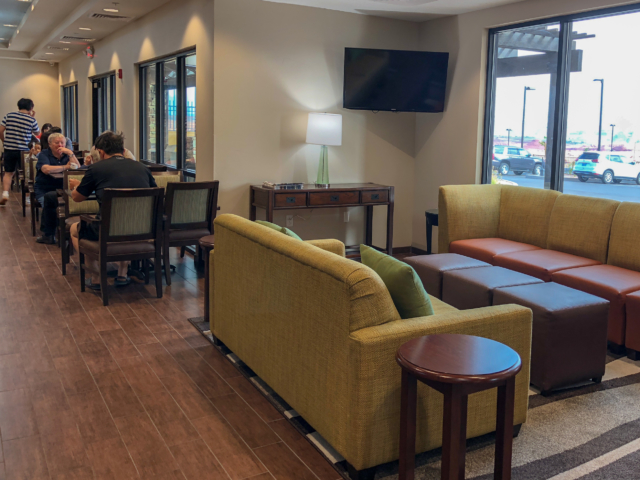 Every morning you will find a free breakfast being served in the lobby area, too. The “Baymont Breakfast Corner” offers guests a complimentary breakfast buffet. Favorite items here include an assortment of eggs, fresh fruits, cereals, sausages, as well as a mix of coffees, juices, and teas. There’s even a make-it-yourself waffle machine. The space is clean and pleasant, but there is not a great deal of seating—the breakfast corner here tends to fill up early, so keep that in mind while planning your morning.