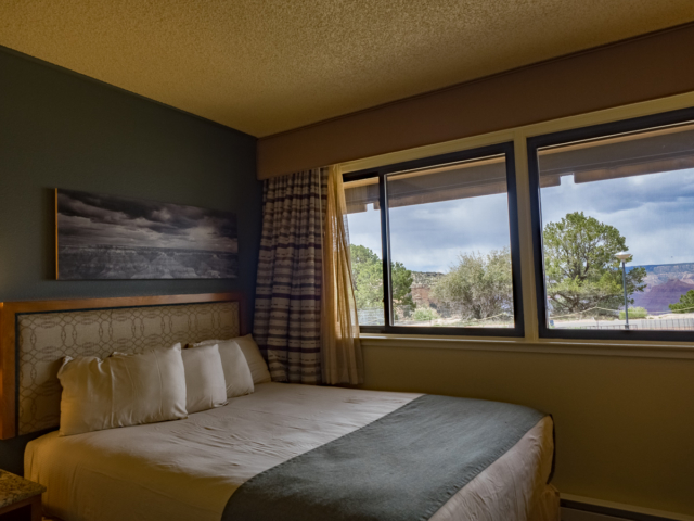 Because most of the rooms are comparable in size and amenities, there are only two basic types of rooms to choose from: partial canyon views, and street views. Previous guests can’t recommend partial canyon views enough; even though they aren’t a complete unobstructed view of the Canyon (which is due entirely to perspective and distance, not construction), it’s still an amazing site to see. Tip: if you really want the best views, request a second floor room!