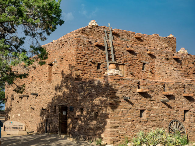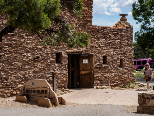 Located right on the South Rim of the Grand Canyon, squarely in the heart of the popular Grand Canyon Village, Hopi House is a favorite stop for visitors to Grand Canyon National Park. Designed by legendary architect Mary Colter—the individual responsible for such other area landmarks as Bright Angel Lodge, Desert View Watchtower, Hermits Rest, Lookout Studio, and Phantom Ranch—Hopi House is a twentieth-century rendering of a Hopi pueblo dwelling. Here you can explore the inner designs of a home that would have been indigenous to the area while perusing a wide variety of striking arts and crafts for sale.